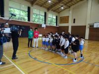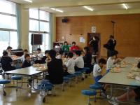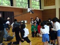 となりのテレ金ちゃんの「おじゃましまSCHOOL!!」の取材のため、ぶんぶんボウルと嬉野監督(津幡の映画「遠くを見てみた」)が来校しました。5月12日(月)午後3時53分ごろ放送される予定です。ぶんぶんボウルが5・6年生の音楽の学習の様子を見たり、給食をいっしょに食べたり、子供たちが得意なことを紹介したり、クラブ活動でいっしょに王様ドッジをしたりしました。お笑い芸人さんのぶんぶんぼうるが楽しいことをたくさんするので子供たちはずっと笑っていました。とても楽しい日でした。