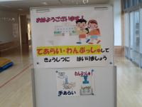※本校ALTが作成したキャラクターで三密をさけるようポスターで呼びかけています!