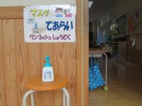 ※校内にポスターを設置して呼び掛けたり,教室の入り口に消毒液を置いたりして,