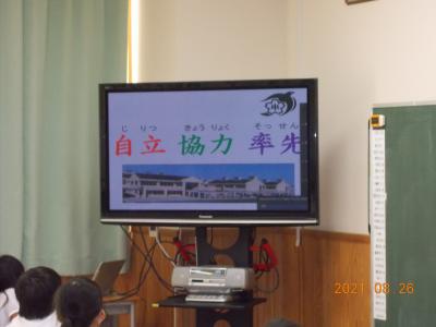 8月26日から二学期が始まりました。感染症拡大防止のため,リモートで始業式を行いました。一番成長できるこの2学期に,それぞれの学年でつけてほしい力について校長先生からお話がありました。低学年では「自立」,中学年では「協力」,そして高学年では「率先」する力です。これらの言葉を校内に掲示し,鹿島っ子全員でさらに成長できるよう頑張っていきます。
