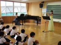 8月30日に,サマーコンサートがありました。今年は2年生を対象に行いました。中能登町で夕方5時に流れる「浜辺の歌」の演奏に始まり,映画やアニメの主題歌など,子供たちがどこかで聞いたことのある曲を演奏してくださいました。ピアノとフルートの素敵な音色に,どの子も聞き入っていました。
