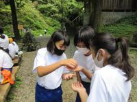 9月15日に,6年生が不動滝に生き物調査に行きました。6年生は総合的な学習の時間に「中能登町の美しい自然」をテーマに取り組んでいます。今回の不動滝の調査では,「」サンショウウオ」や「ヘビトンボ」,「サワガニ」など,きれいな川に生息する生き物がたくさん見つかり,自分たちの身近な自然の美しさを実感するとともに,この美しい自然を未来に残していこうという意識を高めていました。
