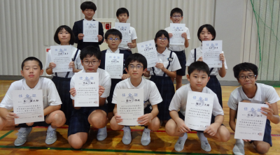 任命証を手にした12名の鹿島小のリーダー達は,