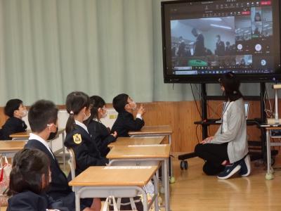 4月12日の朝,各教室と6年教室をリモートでつなぎ,