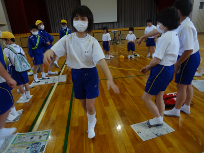 5月31日の5限目、鹿島っ子は、4つの団ごとに体育館や多目的ホールに