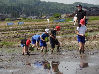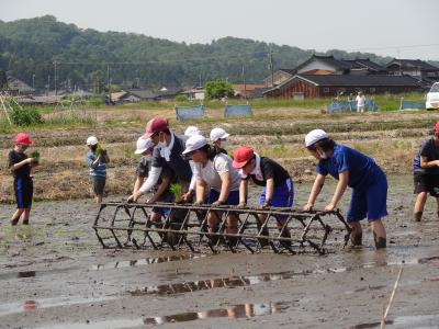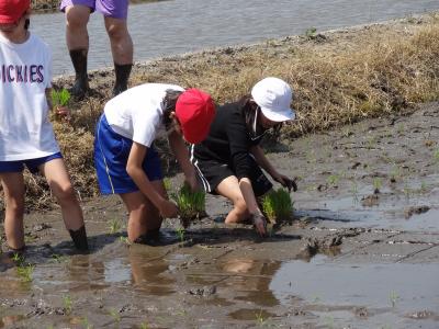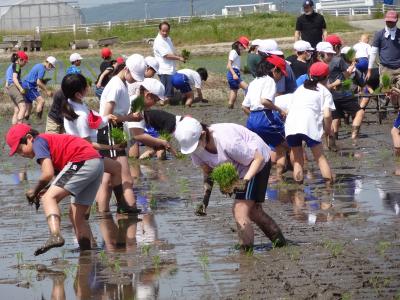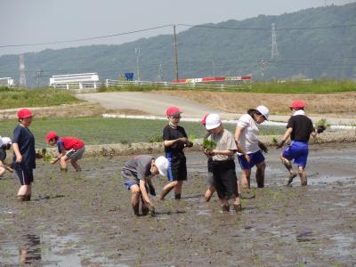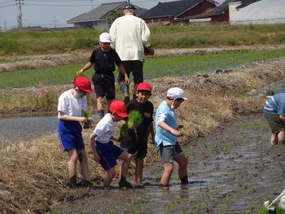 5年生は、今井農園さんのご協力をいただき、田植えにチャレンジしました