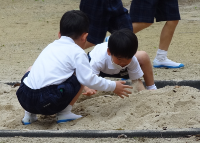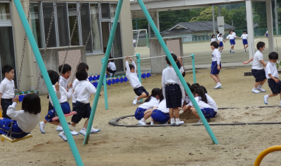 昼休みには、中庭で砂遊びやブランコ、かけっこなどを楽しみ、