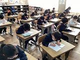 始業式が終わり、いよいよ書初め大会です!冬休みに練習した成果を発揮しようと、どの子も真剣に集中して取り組んでいました。満足できる作品になったかな?