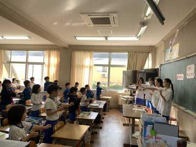 今週は各教室に分かれて応援の歌を覚えたり、6年生が考えた振り付けをやってみたりしています。