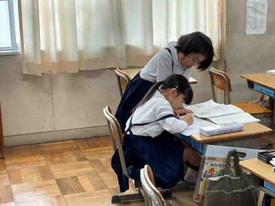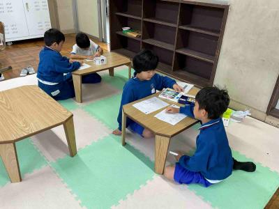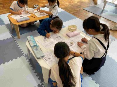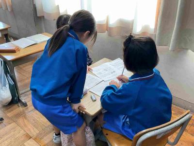 1年生は先生と一緒に自分でまるつけをしていました。