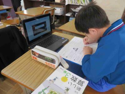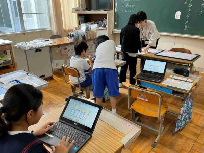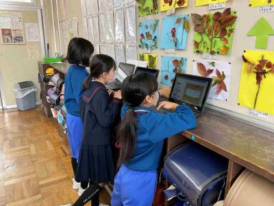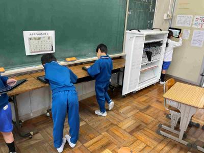 でも、2年生はかけ算の学習でがんばっていました。学校の中のかけ算が使える場所をいろいろと探してタブレットで撮影していました。生活の中で、かけ算が使えますね!
