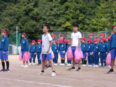 朝からかなり気温が低く寒さを感じる日でしたが、雨にも負けず、片小運動会を開催しました。雨と寒さ対策をして、いざスタート。