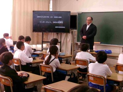 5年生は、非行被害防止講座として市教委から講師の先生をお招きし、ネット依存やSNSの危険性について、おうちの方とともに学びました。