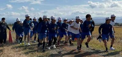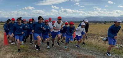今日は、全校マラソン大会。2年ぶりの開催です。熊対策のため、コースも川沿いから「田んぼど真ん中コース」に変更しました。学年ごとのスタートです。