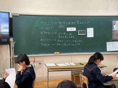 5年生は、スクールカウンセラー村井先生の授業で「短所を長所に変える」という授業をしていました。