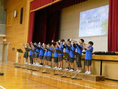 金管鼓隊(復興音楽隊)が6年生から5年生に引き継がれました。