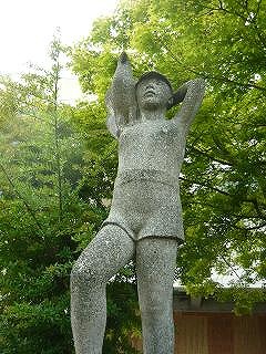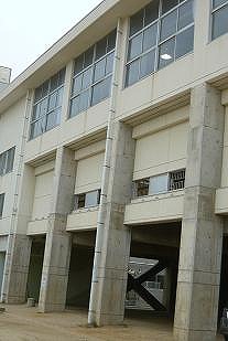 (左から) 正門通路 児童玄関 雄飛像 ピロティ・体育館