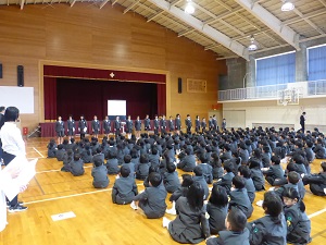 前期の児童委員会の委員長、副委員長の任命式を行いました。