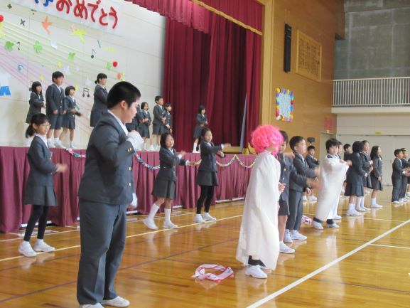 各学年が工夫をこらしての発表です。1年生へのメッセージが