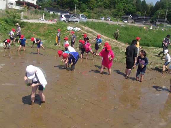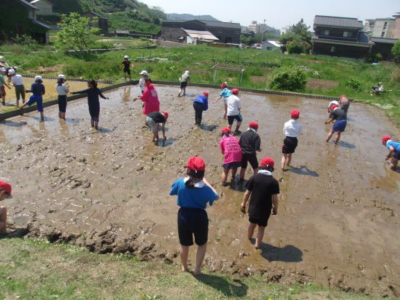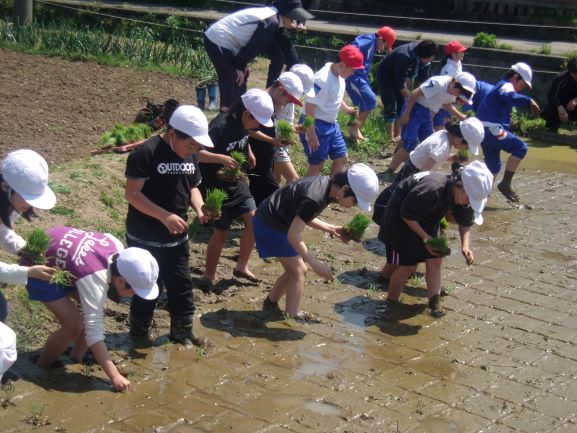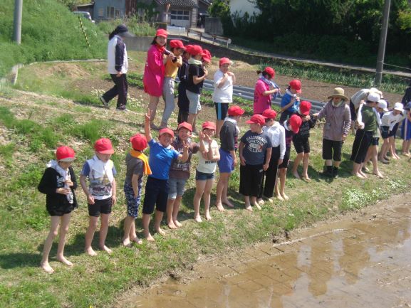 5月10日(金)の午後、4年生は田植え体験に行って来ました。