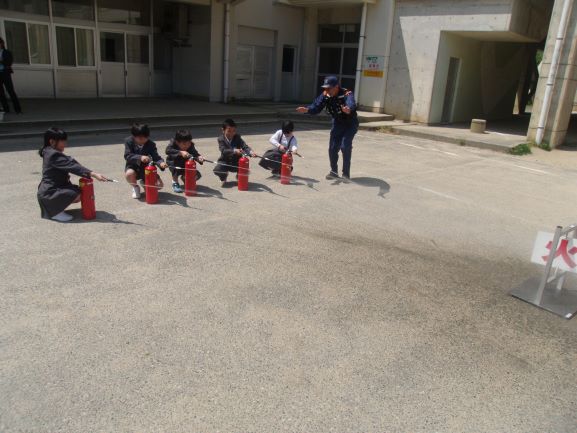 4年生は、水消火器訓練、5年生は、煙避難体験です。防火に対する意識を
