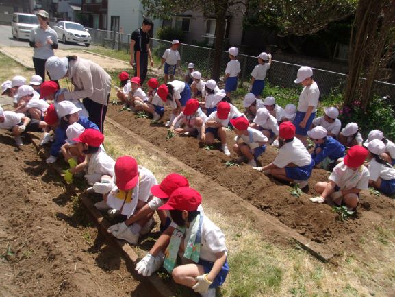 5月17日(金)に2年生が、野菜の苗植えを行いました。