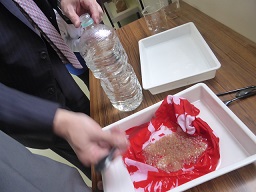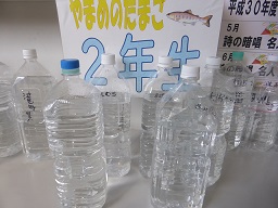 ペットボトルに入れて、みんなで育てます。大きく育てて川に放流します。