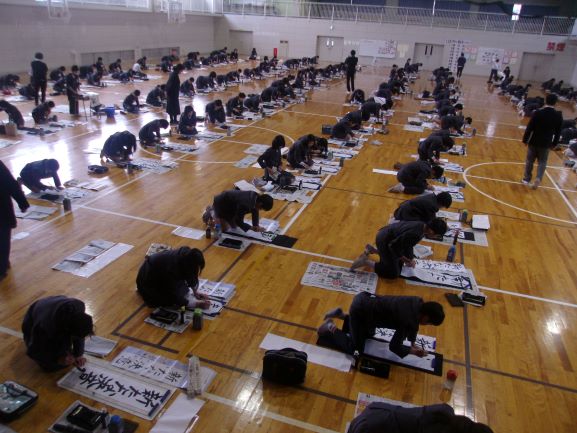 書き初め大会では、1.2年生は、教室で硬筆、3~6年生は、体育館で毛筆を行いました。全員が冬休みの練習の成果を発揮するように、集中して素晴らしい字を書いていました。審査は、先生方で放課後に行われました。
