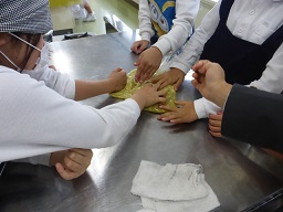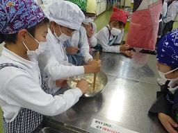 3,4時間目に、スイートポテトとさつまいも入り蒸しパンを作りました。それらを、5限目に味わいながら、歌や合奏でお祭りをしました。