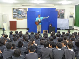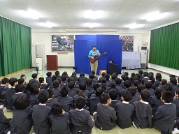 1年生が学年発表を行いました。英語の歌や合奏、クイズをしました。