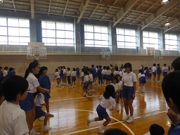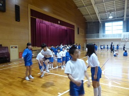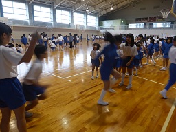 1年から6年生の11グループのなかよし班ごとに、8の字跳びの練習をしてきました。