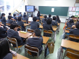 6年生は、学校薬剤師の古坊さんより薬物乱用防止教室で