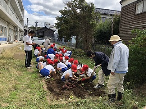 今年は、とても大きな芋になっていました。児童は、1㎏程の重たい芋を掘り出して驚いていました。