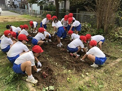 2年生は、春に苗を植えて育てたさつまいもを掘りました。