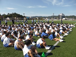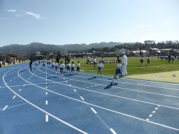 秋晴れの良いお天気の中で、マリンタウン陸上競技場で、校内持久走大会を行いました。自己ベストを目指して、頑張りました。
