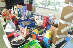 集会室 風 で展示しています。色々なアイデアの作品が展示されています。