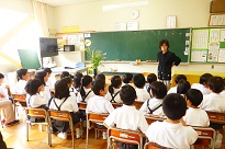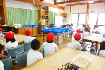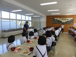 河井小学校のランチルームでは、5年生と3年生が輪島漁業協同組合の方から海女漁についてにお話をお聞きしました。