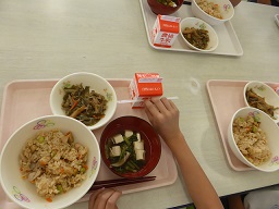 今日の河井共同調理場は、さざえごはんでした。