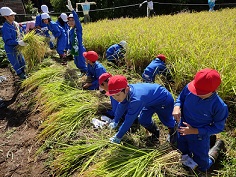 4年生が、春に苗を植えさせていただいた表さんの田んぼで、稲刈りをしました。