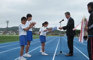 昨日は雨で延期された輪島市の6年生による陸上大会がマリンタウンで行われました。