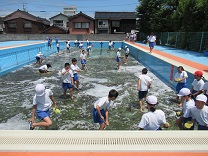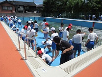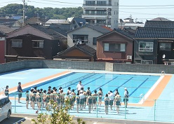 6年生は、プール開きをしました。校長先生からのお話がありました。