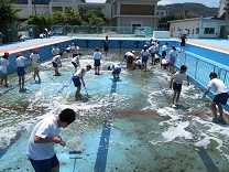冬の間に溜った枯れ葉や砂を取り除きました。気持ちよく、プールに入れるようになりました。
