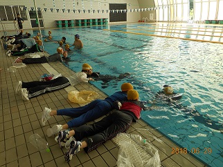 サンプルルの方から、もしも水の中に落ちた時に、どのように行動すべきかについて、お話をお聞きしました。