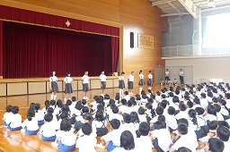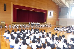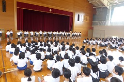 3年生が、歌とリコーダーの演奏を披露しました。奇麗な歌声が体育館に流れました。