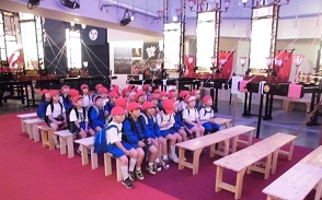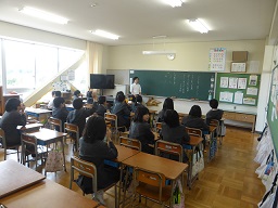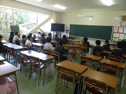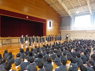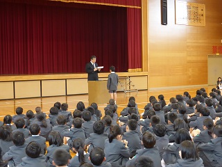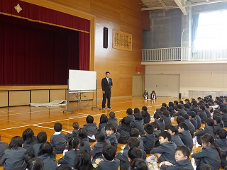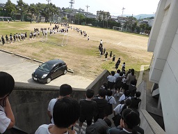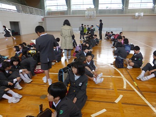 校長先生のお話を聞きました。真剣に素早く移動して、各地区へと帰りました。