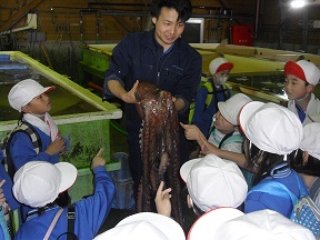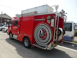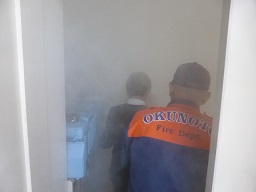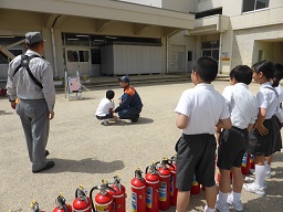 その後、4年生は、消防署の方から、消火器について体験させてもらいました。