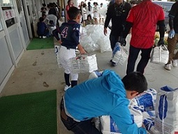 朝早くから、PTAの方は各地区を回り新聞とペットボトルを学校に運びました。学校では、6年生も協力しました。