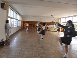 5,6年生は、6月2日の輪島市民まつりでの、パレードの練習を毎日行っています。