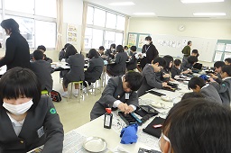 今日は、沈金作家の前古孝人先生に来ていただき、輪島塗のパネルに彫る彫り方を教えてもらいました。来週は、沈金を指導していただきます。よろしくお願いいたします。