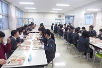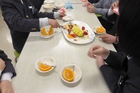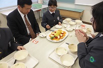 6年生は、ランチルームで、お世話になった先生方と一緒に給食を食べました。